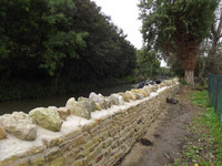 The Hen's Orchard wall (Hen's Orchard side), which we are largely dis- mantling and then re-building, having had the soil against the wall on the towpath side removed.